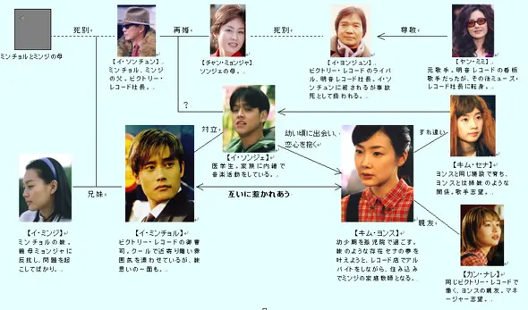 物語の中心にいるのは、ミンチョル・ヨンス・ソンジェ・セナの4人です。ミンチョルとソンジェは同じ家で育ちながら深いわだかまりを抱え、ヨンスとセナは姉妹同然に育ちながら悲しい誤解で引き裂かれます。そこに父ソンチュンが隠してきた過去の事件が重なり、恋愛と家族の因縁が一気に動き出します。